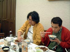 一通りお酒も入り、腹も満たされてごきげんな プレ55さんとおやじんさん。 おやじんさん、すっかりくつろぎモードです。 |