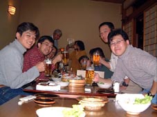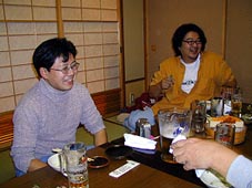 「かんぱ〜い!!(^o^)」。こちらも恒例行事の宴会。 「今日は泊りがけだ!思いっきり飲むぞ〜!!」 この後、おやじんさんと管理人が暴走します^^;。 |