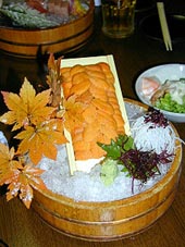 仙台のうまいもの4連発!! まず1つめはやっぱりこれでしょう!! ウニですウニ!!女川や石巻から直送なので、 鮮度がいい上に「どうだ!」とばかりのこの山盛り! 実はこれ見て管理人が暴走しかかりました^^;。 |