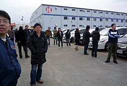 集合写真も撮り終えたし、とりあえず開放っと。 大漁旗をたたむosumanさん |