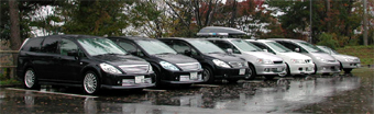 ![]() 「わくわく森林ハウス」に集合した6台です。 奥のコロナプレミオは違います(笑) |