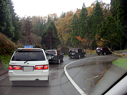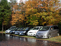 紅葉と車をバックに2度目の記念撮影 このあと3度目の車談義になりましたが、また雨が 降り出しましたのでここで解散となりました。 参加のみなさんご苦労さまでした。 |