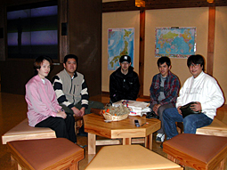 自己紹介のあとでパチリ 左からよしR32U31さん、すももさん、ムツキさん Black Chickさん、とどです。 |