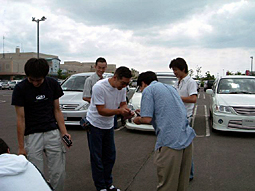 とき・・・2006年7月30日13時から17時 ところ・・ジャスコ釧路店駐車場 GO!プレ大漁旗が、函館から浦河経由で釧路に到着、とりあえず次の移動が決まっていなかったので、 道東メンバー中心に寄せ書きオフ会を開催することとしました。 開催間近に道央メンバー数名から参加表明があり、楽しみにしていたところ、予想を上回る乱入台数と なり、大いに盛り上がりました。 当日は曇り時々晴れと過ごしやすいオフ会日和でした。 幹事が店内で昼食と買い物を済ませて帰ってくると、すでにnobuta号とvigor号の姿が。 久しぶりの再会をvigorさんと喜び合っているところへnobutaさんが合流。 集合時間を過ぎる頃には続々と、地元のMMさん、せばすちゃんさん、ポポロッチさんが集結しました。 と、そこへ函館オフにも参加した道央メンバー3台(onnjiさん、まんちゃんプレさん、Ken-Boさん)が登場、 この時点で9台の参加となり釧路におけるオフ会の最多台数となりました。 名刺交換、談議などをする中、あっという間に1時間。仕事の合間を抜けて片道1時間以上かけて参加し てくれた、最も東に位置するメンバーnobutaさんの帰宅時間となったことから、遅ればせながら自己紹介 を行い、中締めの集合写真と寄せ書きを行いました。 それから10分ほど経ち、札幌メンバーのてらっちゃんさんが洗いたてのボディ(笑)で登場、これで参加 台数10台となり、記録更新です。 U30、U31それぞれに工夫の跡が見られ、それぞれのオーナーさんが参考に(物欲菌感染とも言いま すが)していました。 てらっちゃんさんも含めて寄せ書きと再度の集合写真撮影を行った後は、時間の許す限り談議を行いま した。 地元メンバーが仕事の都合などで退場する中、札幌方面から強行軍で参加されたメンバーさんに「今日 中に家に帰れる時間」まで粘っていただき、次回旭川オフ会の予告と最東端、最北端への到達を意思統 一し、17時過ぎに解散となりました。 今回の参加台数は10台(U30前期が4台、後期が3台、U31が3台) せばすちゃんさん、MMさん、nobutaさん、ポポロッチさん、てらっちゃんさん、vigorさん、Ken−Boさん、 まんちゃんプレさん、onnjiさん、プレサンジ(幹事) メール参加していただいたRICOCOさん、rascalさん、にれちさん、ありがとうございました。 他にも参加メンバーさんに数多くのメールが届いていました。 重ねて感謝いたします。 参加された皆さん、遠路はるばる参加された方も含めてご苦労さまでした。 またどこかでお会いしましょう! |
