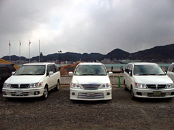![]() 左から もりしげさん号、きのこさん号、みのちゃんさん号 |