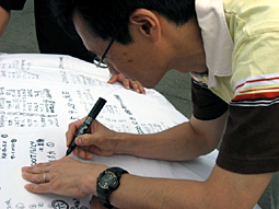 タッケリンコさんです。 皆さん書き込みしました。 これで最終書き込みでした。 道内で14回行われた「寄せ書き」ですが、最高記入 者は13回書き込みをした「あのしと」でした!(爆) 12回の「このしと」と「そのしと」は今回参戦できず、 残念がっていました・・・。 |
