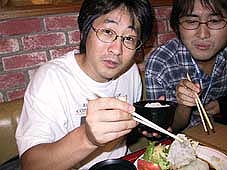 おやじんさんからの頂き物を皆さんでごちそうに なっている所。 2パック入っていましたが、1パックは、小島君の 晩ご飯になりました。 おやじんさん、お土産頂きありがとう御座いました。 残りの参加者で美味しく頂きました |