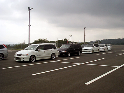 takapapa号のサイドミラーに写った後続車です。 黒いプレは こみ号です。 |